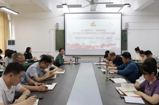 为推进主题教育走深走实,按照学校“三个一百”主题教育专题党课工作安排,6月7日下午,食品科学与制药工程学院党总支书记滕聿峰在文科楼213会议室以《在主题教育中领悟和把握习近平新时代中国特色社会主义思想的理论精髓》为题为全院师生党员讲授专题党课。