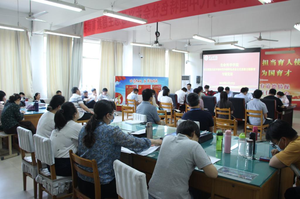 为促进学习贯彻习近平新时代中国特色社会主义思想主题教育扎实开展、走深走实,推动师生党员筑牢信仰之基、补足精神之钙、把稳思想之舵。5月18日下午,生命科学学院党总支书记郭传鑫在理工楼2220会议室为全院教师讲授主题教育专题党课。