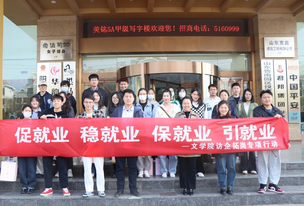 为拓宽毕业生就业渠道,加强校企合作交流,3月31日,文学院一行前往山东飞华品牌管理有限公司开展访企拓岗促就业活动。
