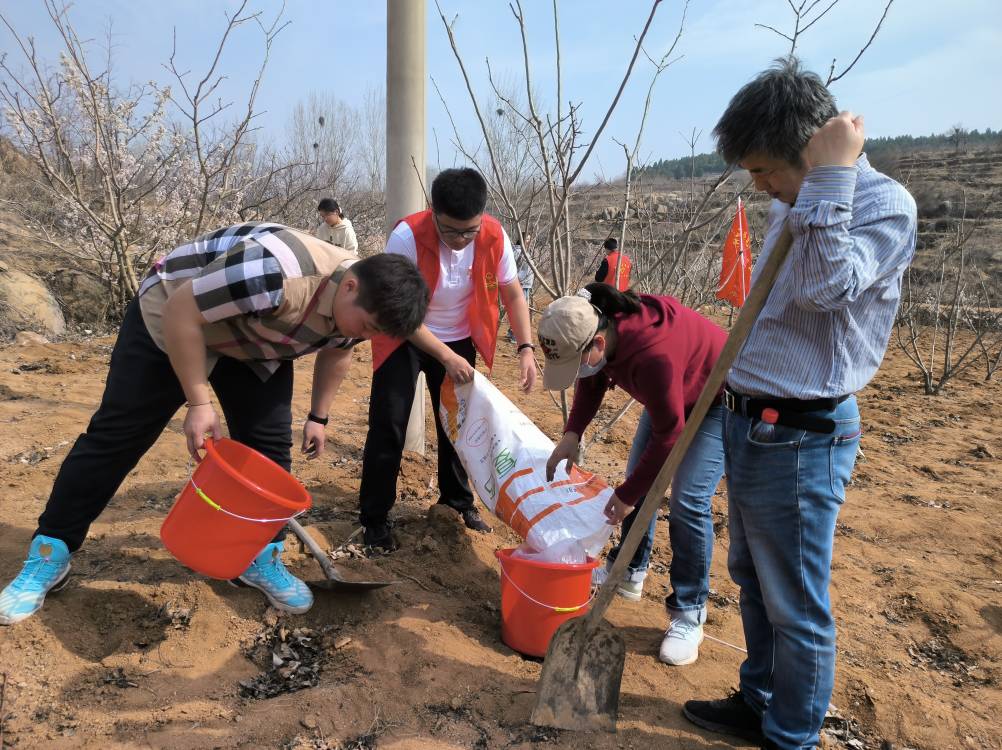 志愿者与峪子村党员代表共同开展了植树活动。植树现场,大家分工协作,扛苗散苗,挥起铁锹,铲土、扶苗、填坑……经过一翻热火朝天的劳动后,一棵棵新栽种的树苗在和煦的春风中展现勃勃生机。志愿者还深入田间地头帮助残疾农民施肥浇水,普及科学施用化肥知识,助力春耕生产。