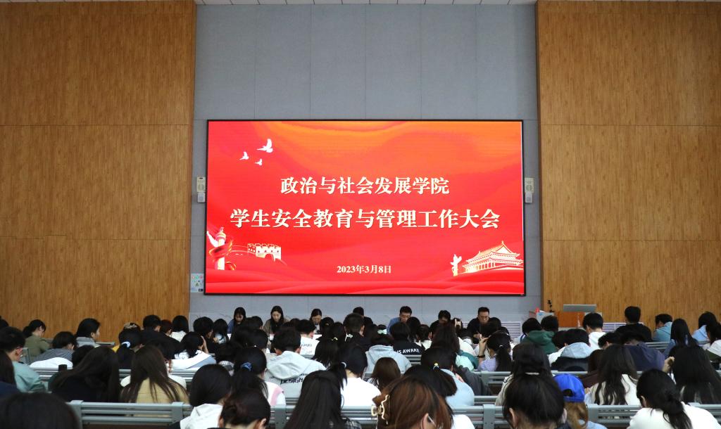 为进一步做好新学期学生的安全教育与管理工作,增强学生的安全防范意识,3月8日下午,政治与社会发展学院在增信楼113室召开学生安全教育与管理工作大会。院党政领导、辅导员、班主任及2020-2022级全体学生参加会议。
