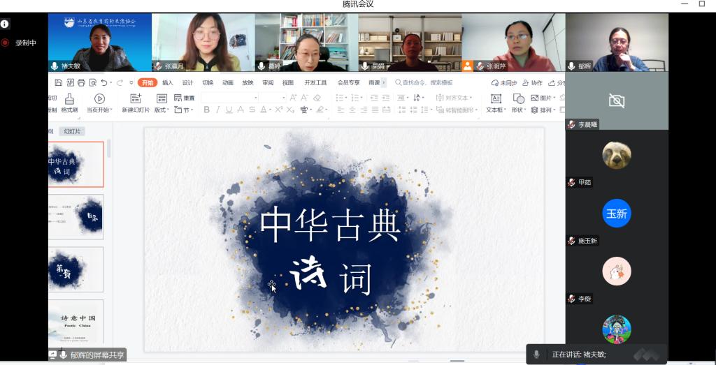 会上通报了“汉语桥”线上团组招生情况,分析了学员学情及“汉语桥”线上团组语言教学的特点。文学院汉语国际教育教学团队和外院教师围绕“中华古水城、寻梦台儿庄”“ 领悟班墨大匠心,应用传承看枣院”“ 中华古诗词赏析” “世界展陈面积最大的世界语博物馆”“ 渔灯袅袅、运河人家——你知道京杭大运河吗?”等五个教学单元展开了深入的交流和研讨,明确了每一个教学单元的主题和语言点,并就优化提升PPT各抒己见、献计献策。