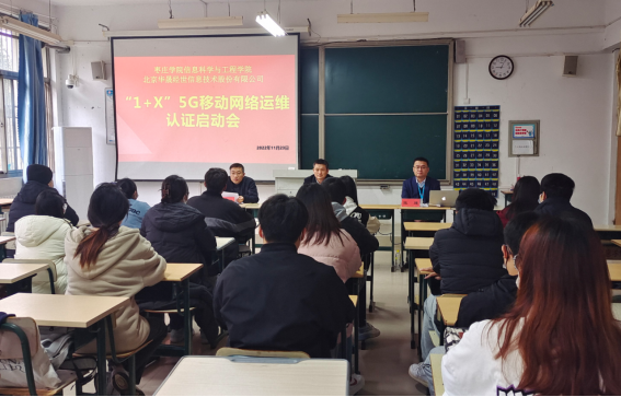 11月23日上午,信息科学与工程学院在理工楼2120教室召开“1+X”5G移动网络运维职业技能等级认证启动会。学院相关领导、北京华晟经世信息技术股份有限公司驻校经理张建出席会议。学院网络工程专业移动通信方向2020级30余名学生参加活动。