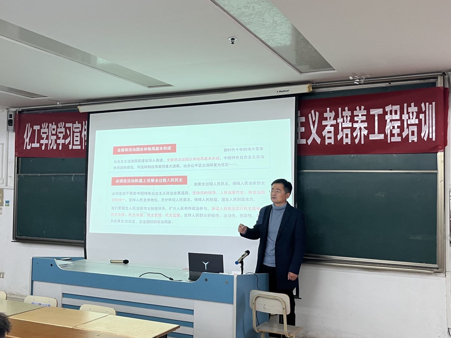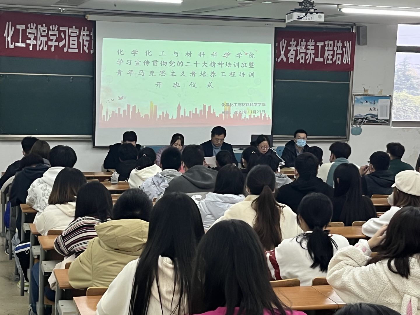 11月23日下午,化学化工与材料科学学院学习宣传贯彻党的二十大精神培训班暨“青马工程”培训班开班仪式在综合楼1213举行。学院党政领导、辅导员、主要学生干部参加了仪式。