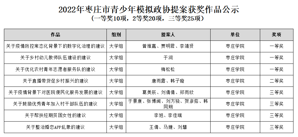 近日,2022年枣庄市青少年模拟政协提案活动落下帷幕,永利官网共有8份学生模拟政协提案入选,最终获得1等奖3项,2等奖1项,三等奖4项。
