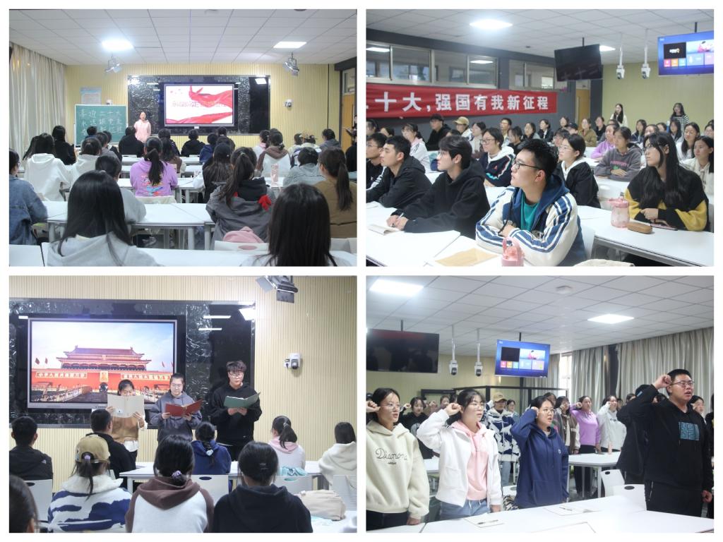 活动分两个阶段进行,第一阶段与会团员们共同学习了党的二十大报告,分享了家乡红色故事,感悟了家乡近十年来的变化,齐唱了团歌,重温了入团誓词。