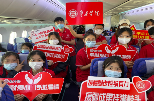 14点45分,飞机平稳起飞,永利官网援疆实习支教团正式踏上前往新疆的路途。一路上老师和同学们欢声笑语不断,在飞机上,带队老师仍耐心负责为支教成员们强调疫情防控的重要性,与支教学生进行深入交流。