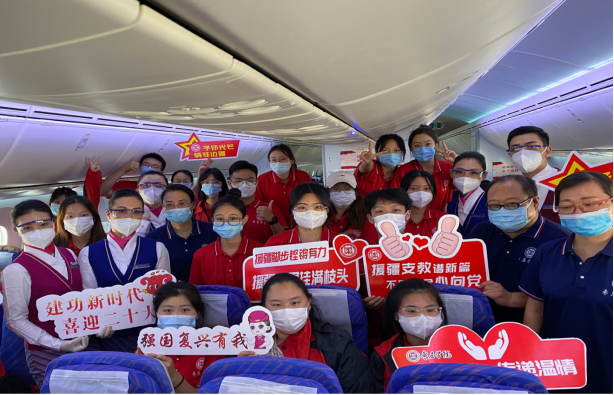 援疆支教团于中午12点30分抵达济南遥墙机场,省教育厅、援疆指挥部对援疆支教工作高度重视,为全体援疆成员定制专门航班,南方航空公司为同学们开放专属援疆柜台,让同学们更快捷高效的办理托运,减少疫情风险。