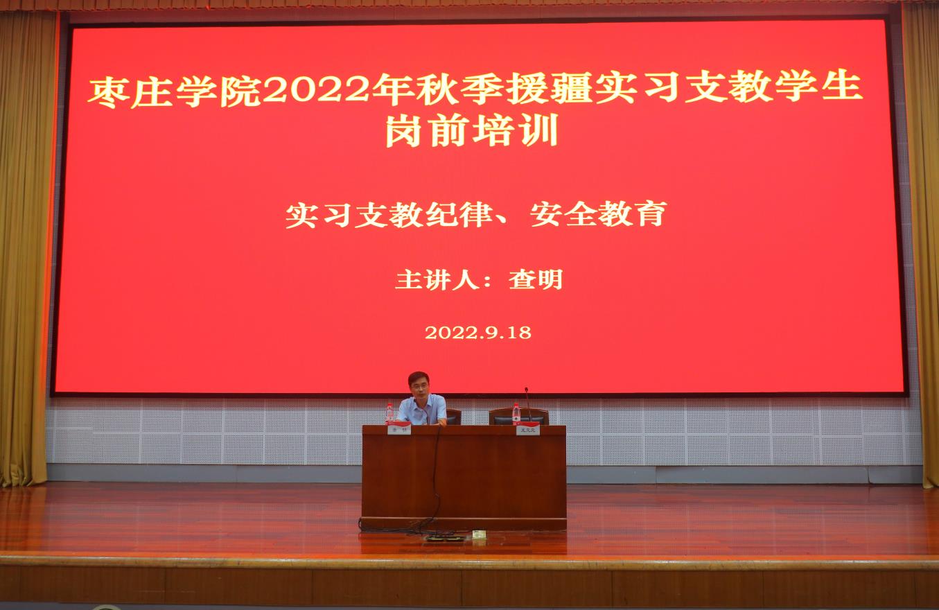 9月18日,永利官网2022年秋季援疆实习支教团岗前培训在市中校区综合楼报告厅举办。本次培训包括分散指导和集中培训两个环节,分散指导由各学院自行安排,主要包括师范生技能培训、适应性教育、集体生活注意事项等;集中培训在综合楼报告厅进行,邀请四名主讲人进行了不同主题的培训,主要包括思想政治教育、实习支教纪律和安全教育、援疆支教对个人成长的意义、新疆的生活指导、民族风俗禁忌等内容。永利官网援疆实习支教团全体师生参加了此次培训。