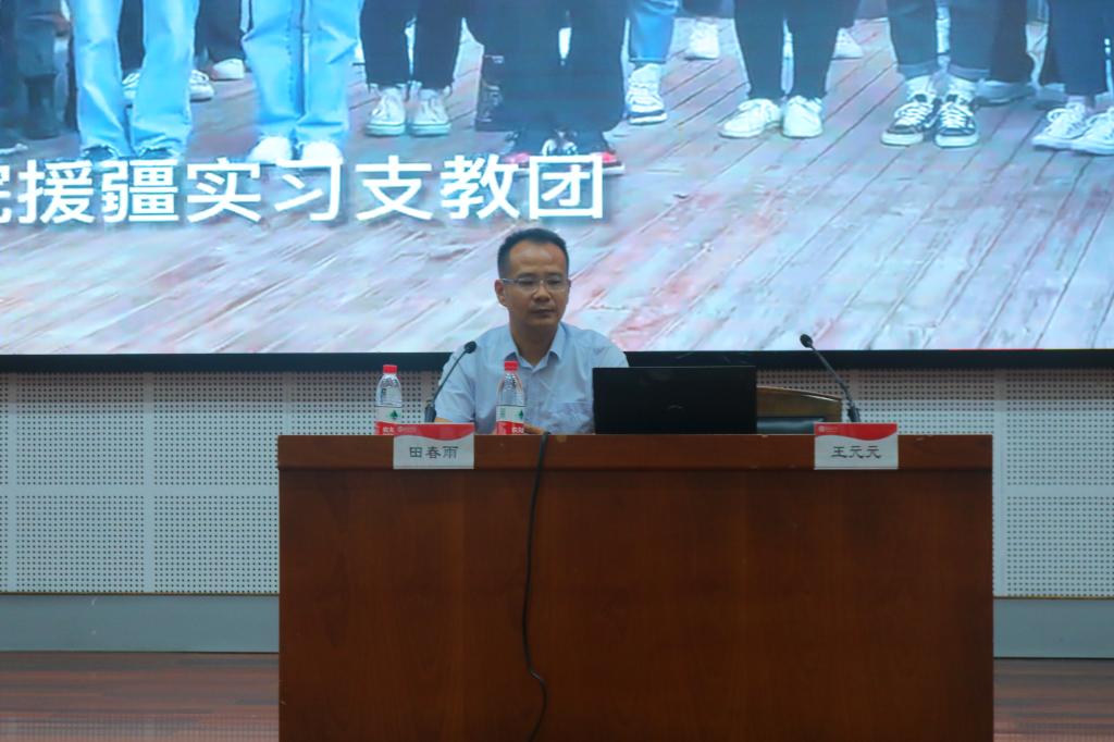 援疆实习支教团带队教师王明山、张婷、李垒分别就教育教学、生活问题、乘机注意事项等方面进行了讲解。会议最后,支教团团长王元元全体支教师生要提高政治站位,不惧困难;要不忘初心,勇于担当;要严守纪律,确保安全,努力为新疆教育事业发展和民族团结贡献力量。