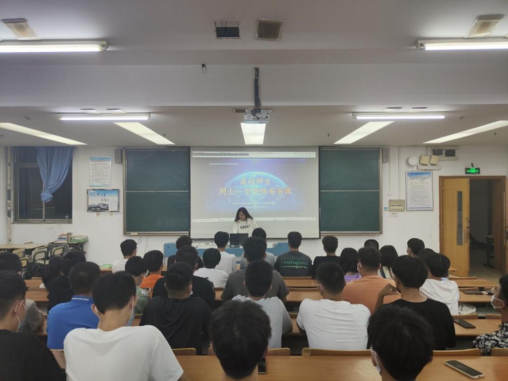 9月11日,组织全体学生观看主题公开课“高校师生同上一堂网络安全课”。课上,主讲老师以案例与法律相结合的方式,深刻剖析了网络安全的基本知识、相关立法及如何防止大学生陷入网络陷阱等问题。
