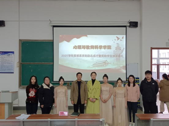为进一步宣传国家资助政策,发挥优秀学生的榜样示范引领作用,12月20日,心理与教育科学学院在教师教育楼216教室举办感恩资助励志成才暨奖助学金颁奖典礼。院党总支书记宋明峰、资助工作负责老师以及2021级部分学生代表参加活动。