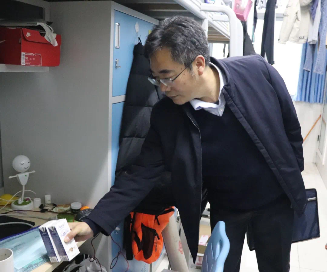 副校长兼学院院长安涛、党总支书记蔡永清带领党员教师来到学生宿舍,与同学们亲切交谈,了解他们的复习进度、学习状态和饮食起居情况,鼓励他们合理安排时间,调整好心态,树立必胜信心,再接再厉,以最好的状态做好考研准备。同时,老师们贴心地将牛奶、文具袋等慰问品放在同学们书桌上。