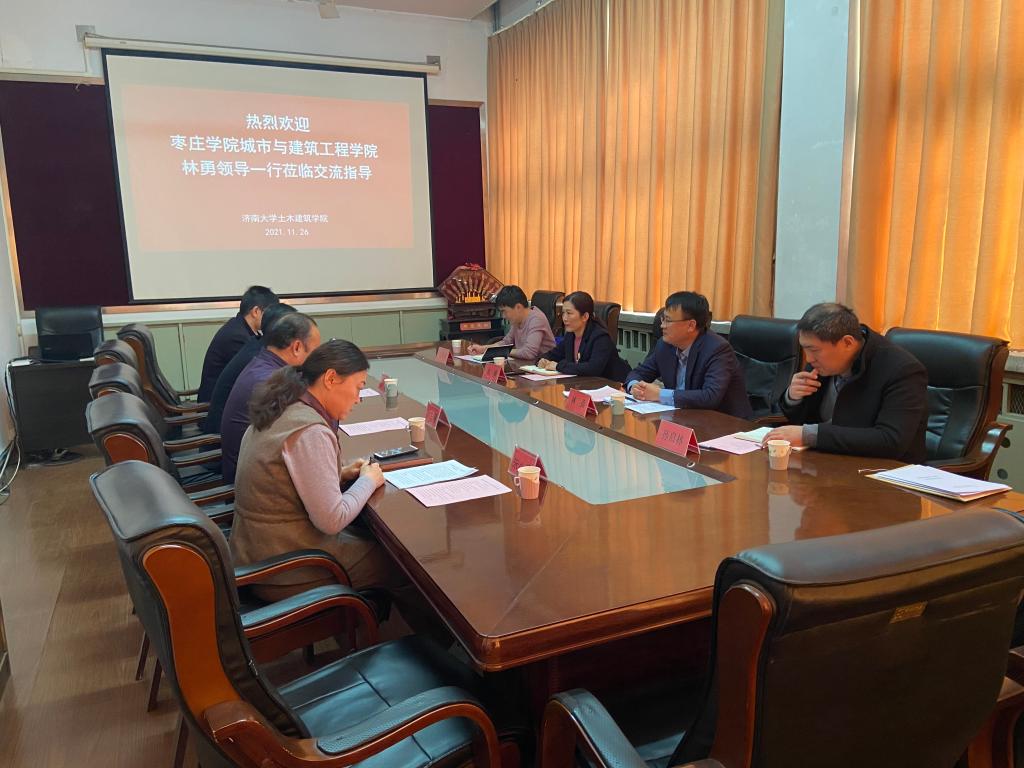 林勇对济南大学土建学院的热情接待表示感谢,对土建学院所取得的卓越成绩表示钦佩,对双方的合作充满期待,并围绕土木类专业建设、工程认证、学科建设、研究生合作培养及实验室建设等多方面工作进行了细致的交流。