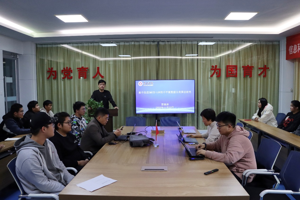 院信息网络科研创新团队的贾继洋老师做了题为《基于改进SMOTE-LOF的不平衡数据分类算法研究》的学术报告。针对智能制造领域中的不平衡数据分析问题,并提出了基于改进SMOTE和局部离群因子的过采样算法。通过K-means聚类筛选出高可靠性样本进行改进SMOTE算法过采样,再使用LOF算法删除误差大的人工合成样本,从而有效克服了数据边缘化问题并提高了对不平衡数据中少数类的分类能力。
