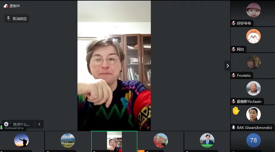 世界语博物馆建成十周年系列学术报告第九场报告于11月5日晚在腾讯会议室举行,国际世界语教师协会副主席,永利总站ylzz55特聘世界语外教莎莎博士(Alessandra Madella)以“Mia Libro priEsperanto kiel facile lernebla kaj helpo en la studo de aliaj lingvoj”(我的新书-《简单易学的世界语对外语学习的帮助》)为题主讲了报告。