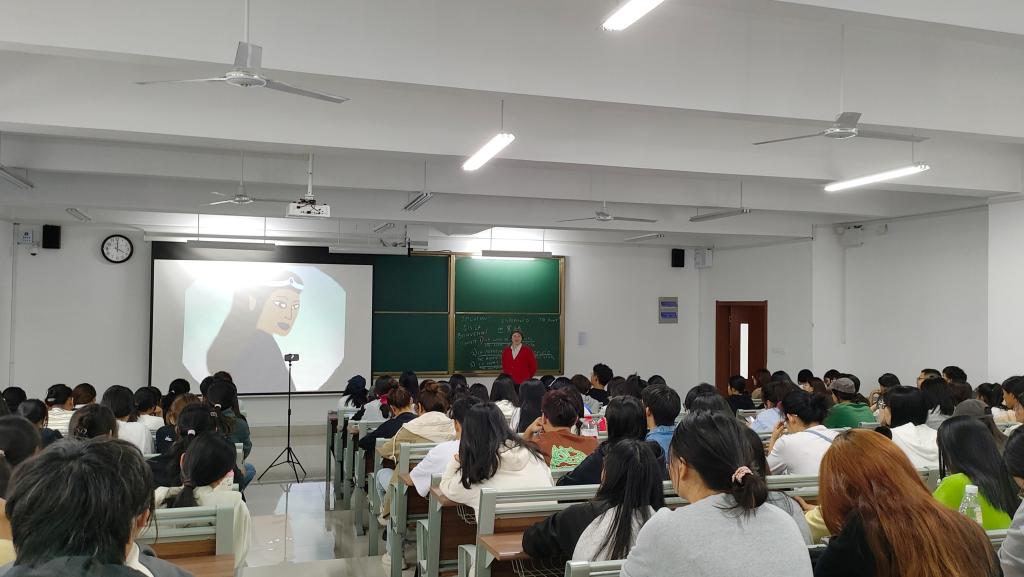 讲座中,Madella博士详细介绍了世界语的起源、发展、应用以及学习技巧等多个方面,内容十分丰富。通过生动形象的实例,进一步加深了同学们对世界语的了解;通过播放生动有趣的世界语动画片,增强了同学们对学习世界语的兴趣和热情;通过教授一些基本的世界语词汇,如“Saluton”(你好)、“dankon”(谢谢)和“ĝis la revidon”(再见)等,让同学们切实感受世界语的魅力。讲座结束后,大家踊跃提问,Madella博士耐心答疑解惑,现场气氛活跃。