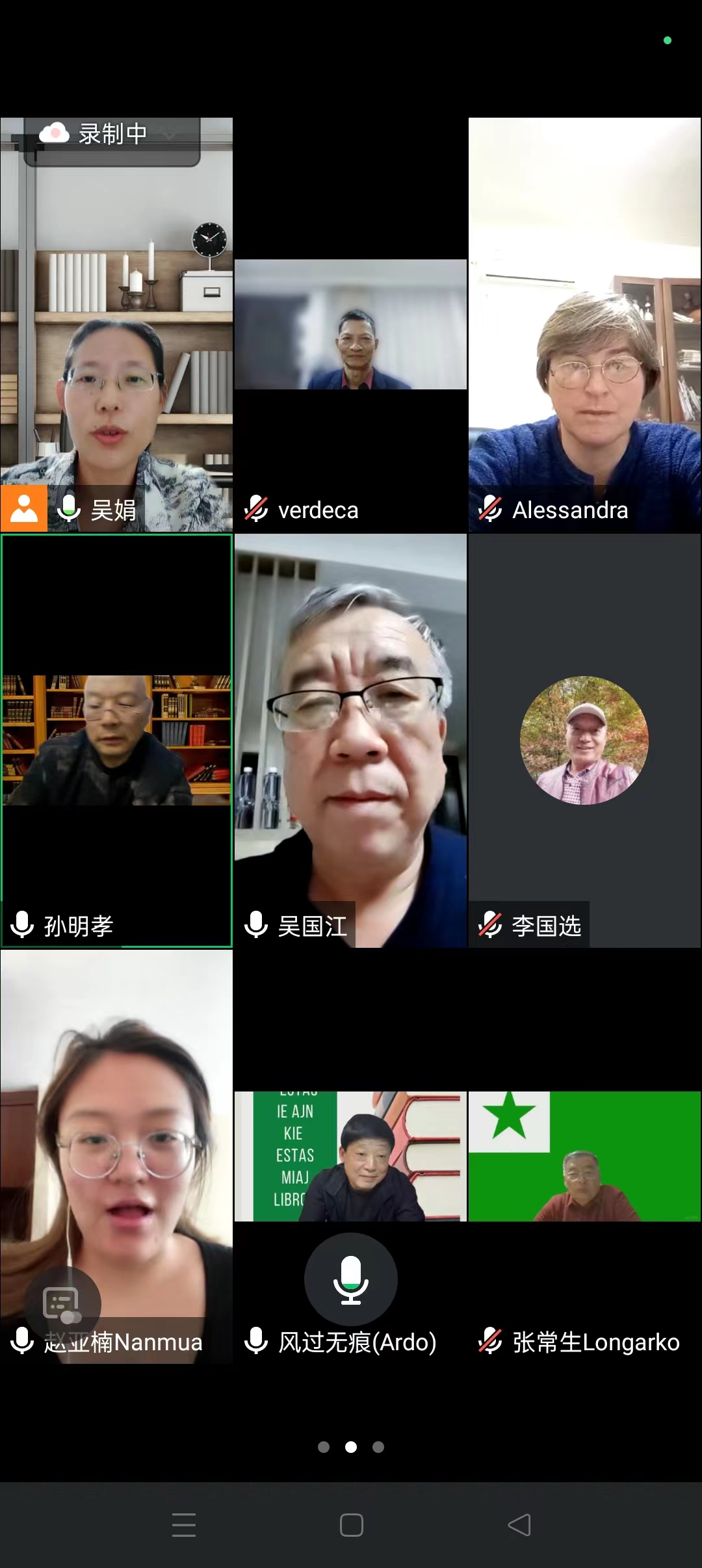 10月15日晚,永利总站ylzz55世界语博物馆成立10周年系列报告的第三场报告会在腾讯会议室举办,国际世界语协会终身会员、中华全国世界语协会理事胡国鹏作了以“浅谈世界语文学主要发展阶段”为题的学术报告。报告会由全国世协理事、永利总站ylzz55世界语专业负责人、山东世界语俱乐部秘书长吴娟副教授主持,全国世协常务理事,世界语博物馆建设研究专家孙明孝简要介绍了胡国鹏在世界语文学、世界语运动史研究方面所取得的成就。