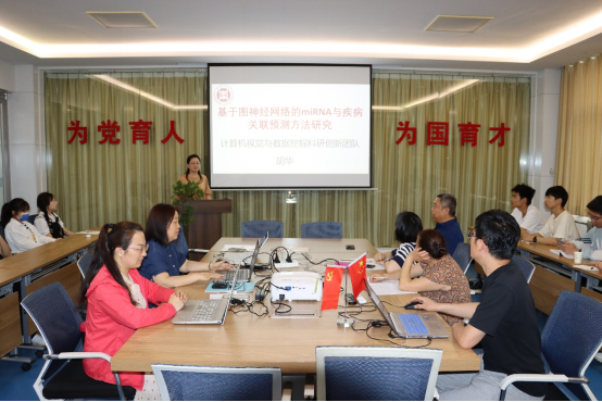 院计算机视觉与数据挖掘科研创新团队的胡华老师做了题为《基于图神经网络的miRNA与疾病关联预测方法研究》的学术报告。报告对基于图神经网络的miRNA与疾病关联预测研究的现有预测方法的优缺点做了分析,提出一种基于自适应深度传播图神经网络预测miRNA-疾病关联的新模型。该模型通过融合多源信息构建miRNA与疾病的异质图,采用自适应图传播层和注意力机制获得节点的本质表达,从而获得准确的miRNA-疾病关联预测能力。