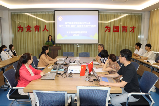 院智能感知科研创新团队的迟庆云老师做了题为《基于网络药理学和分子对接探讨“黄连-茵陈”治疗胃炎的作用机制》的学术报告。报告首先提出在中药系统药理学数据库与分析平台(TCMSP)中检索获得“黄连-茵陈”药对的活性成分、作用靶点及分子结构,建立数据集的方法;然后,通过筛选胃炎疾病靶点,并与“黄连-茵陈”药对活性化合物作用靶点取交集,构建“药物-成分-靶点-疾病”网络;最后,筛选核心基因,进一步对筛选基因靶点进行GO及KEGG通路分析,从而为“黄连-茵陈”治疗胃炎的机制研究提供参考依据。