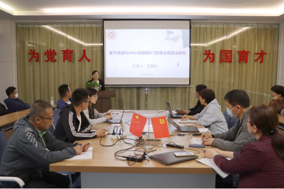 院信息网络科研创新团队的王艳秋老师作了题为《基于改进ResNet的肺部CT影像分类算法研究》的学术报告。针对COVID-19患者CT影像的分类问题,基于传统的卷积神经网络分类模型,提出一种基于改进ResNet50的肺部CT影像分类算法,该算法采用多尺度特征融合策略,结合改进的注意力机制,获得特征图内部特征点之间的相关性系数,最终达到增强特征图表征能力的效果,通过实验证明,该算法具有较强的自适应能力和分类能力。