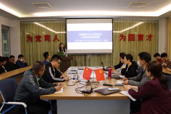 院联邦强化学习科研创新团队的黄婕老师作了题为《改进的YOLOv5算法在公共安全中的应用研究》的学术报告。报告基于YOLOv5目标检测算法,针对口罩检测和安全距离监测两个场景中不同的检测需求,进行了算法改进,达到了良好的检测效果。