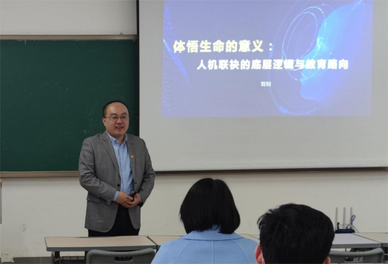 刘钊老师以“体悟生命的意义:人机联袂的底层逻辑与教育路向”为题做学术报告。面对当下视“人机联袂”为人在未来较为理想的存在与发展模式这一理论研究大背景,刘钊老师对人机联袂构想的效用展开追问和反思,分析了此构想背后隐藏的底层逻辑,认为其实现的基础在于彻底抛弃霸权逻辑,以人文精神重构价值体系,为人工智能提供正确的模板与范本。在人机联袂境遇中,为确保人的价值主体地位,教育的目的就必须超越纯粹的价值实现,而要去培养能够进行生命意义审思的人。为达成此目的,教育必须借助人机联袂的技术条件,将真实境脉与虚拟境脉有效整合以构建学习支持服务系统,并通过充分的信息交互引发主体对多元生命意义的体悟与融合。