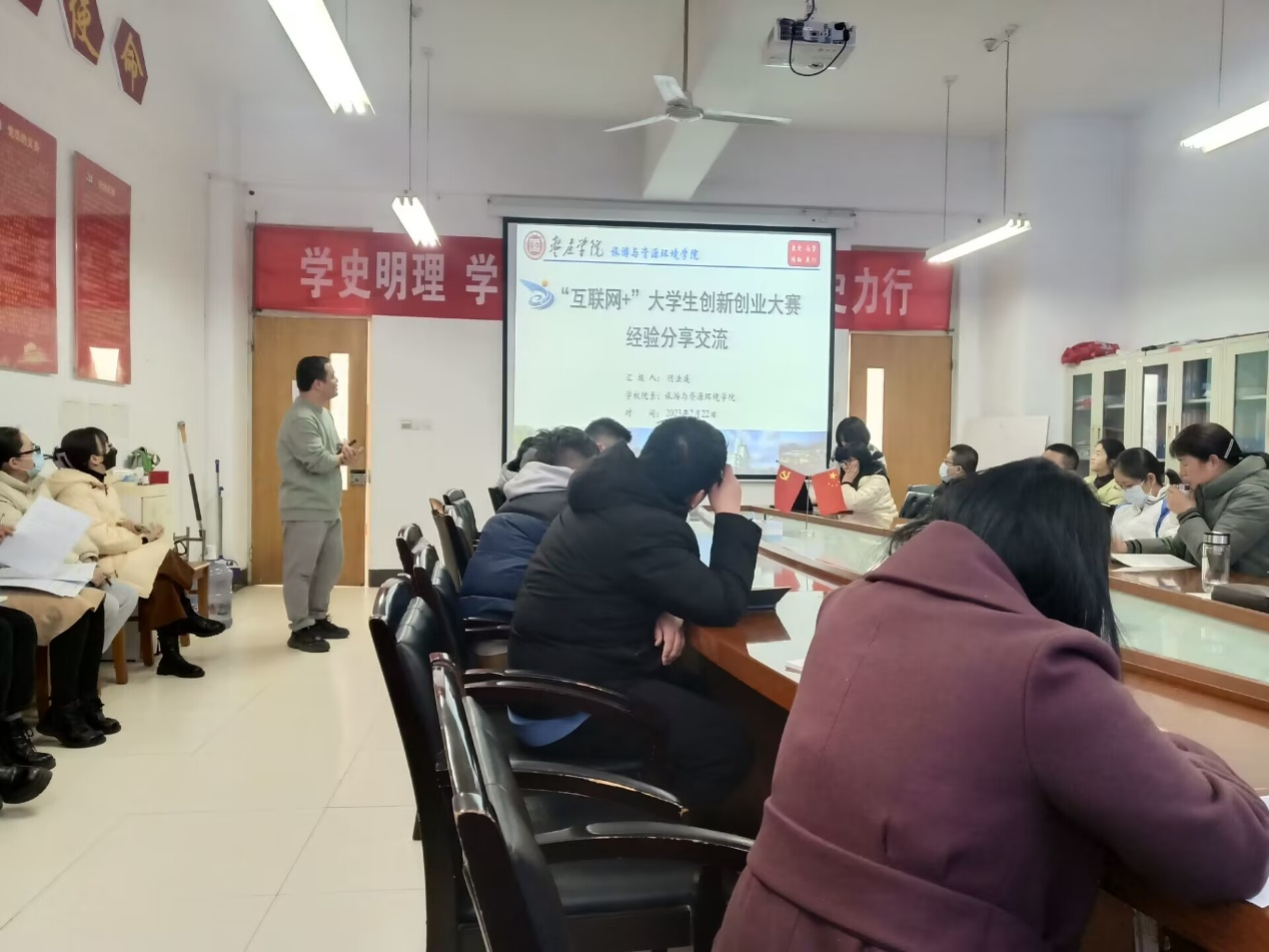 为贯彻高等教育综合改革要求,提高学院师生2023年“互联网+”大学生创新创业大赛参赛热情,旅游与资源环境学院于2月22日下午在理工楼2514会议室举办第七期教学改革研究沙龙。第六届和第七届中国国际“互联网+”大学生创新创业大赛银奖指导老师、青年博士阴法庭担任主讲,学院全体专任教师参加了本次报告会。