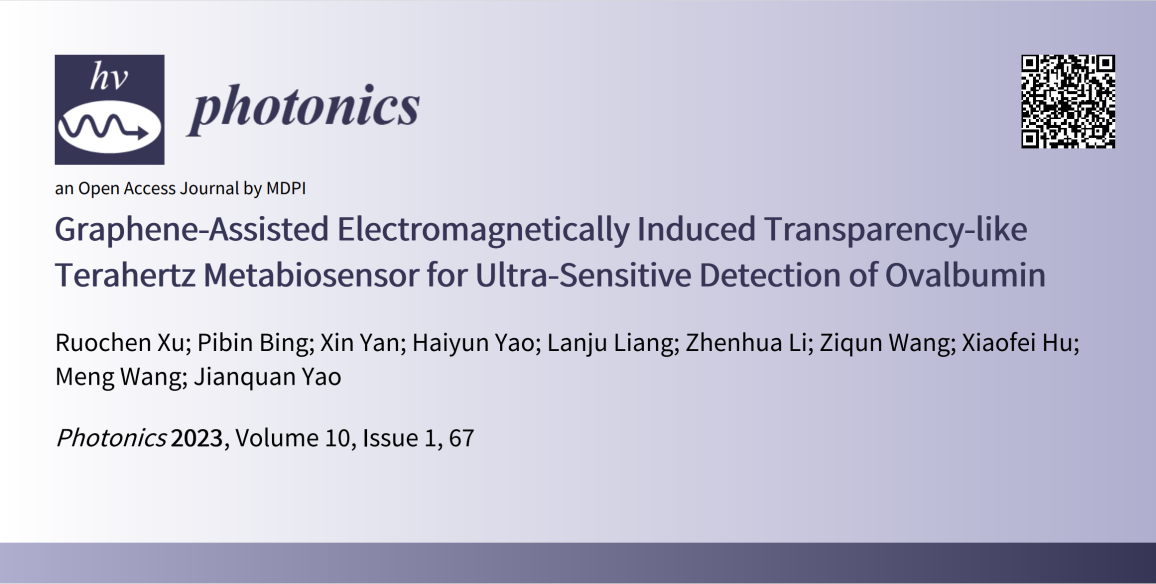 近日,山东省太赫兹科学技术及应用创新团队梁兰菊教授课题组设计了一种太赫兹生物传感器,对卵清蛋白实现了8.63pg/mL探测。研究成果以“Graphene-Assisted Electromagnetically Induced Transparency-like Terahertz Metabiosensor for Ultra-Sensitive Detection of Ovalbumin”为题发表在Photonics。