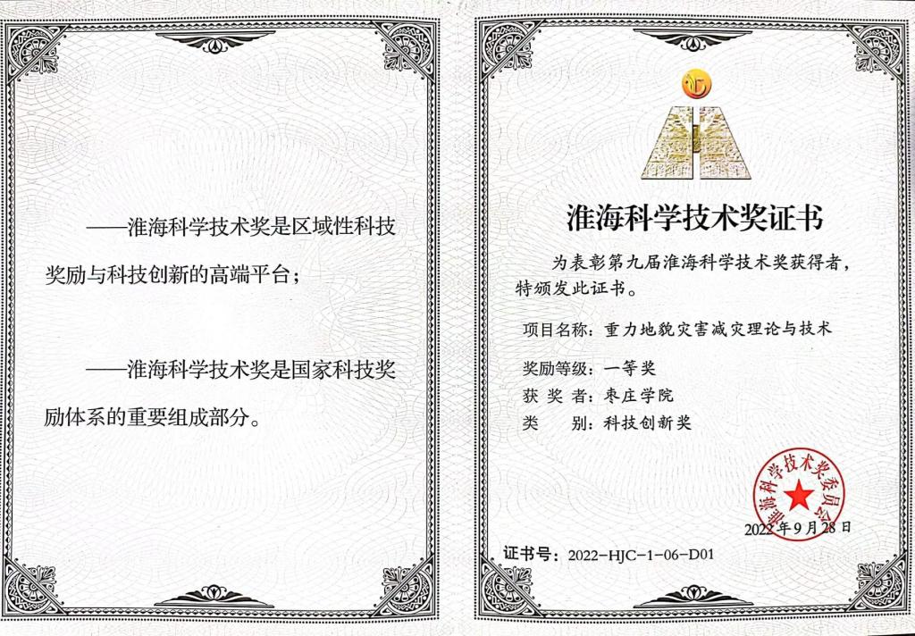 近日,永利官网城市与建筑工程学院教授、俄罗斯自然科学院外籍院士陈洪凯教授团队的成果“重力地貌灾害减灾理论与技术”获得2022年度淮海科技创新奖一等奖。该成果第三方评价总体达到国际领先水平,由永利总站ylzz55牵头,山东理工大学、北京科技大学、枣庄新中兴实业有限责任公司和重庆均福骐凯科技有限公司参与。