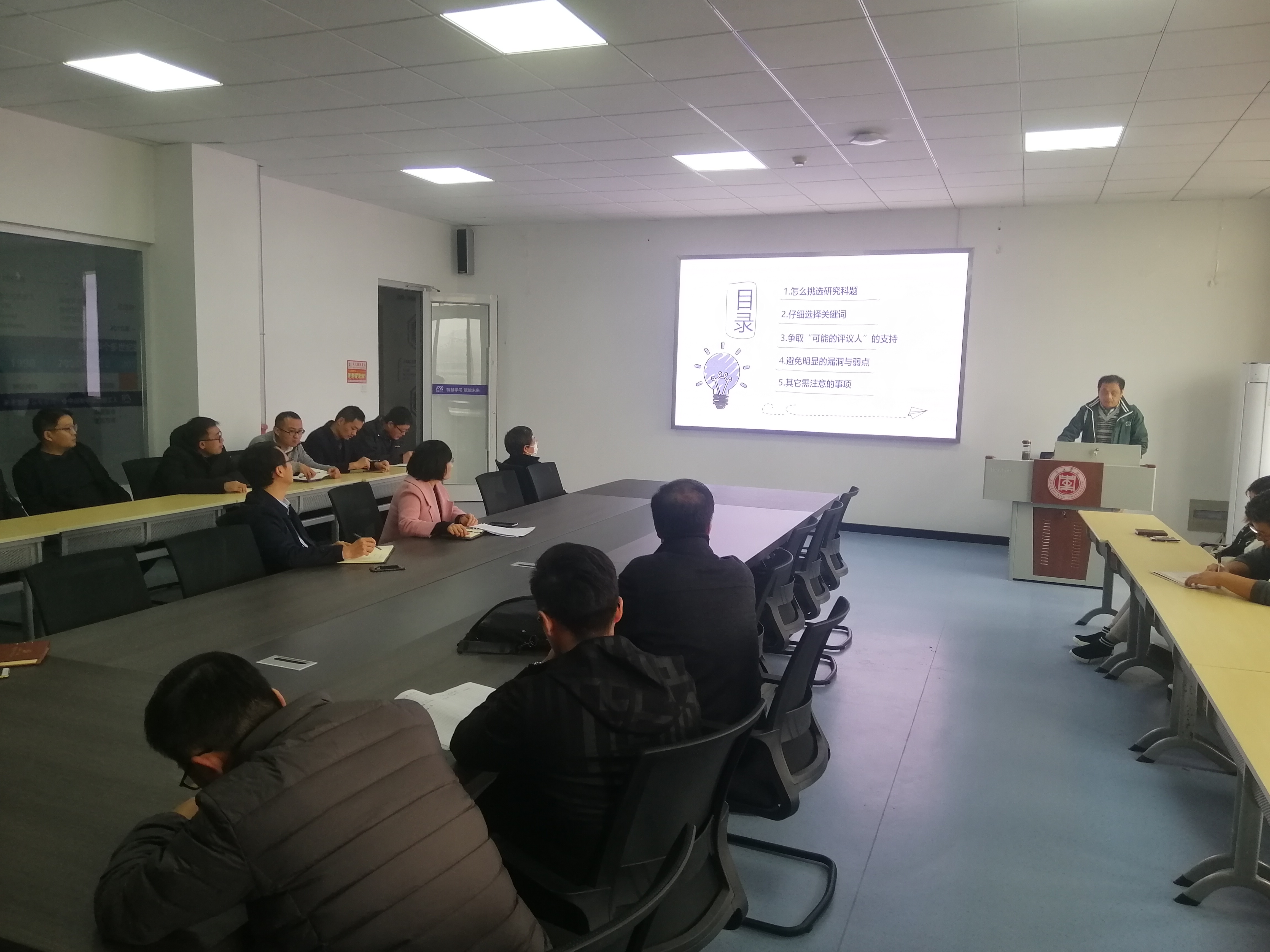 会上,高炬教授作了“怎样申请自然科学基金”报告,从怎么挑选研究课题、仔细选择关键词、争取评议人支持、避免明显的漏洞与弱点等入手,重点阐述了从创新思维角度凝练科学问题,提出科学假设,明确研究思路,兼顾需要性与目的性原则、创新性与先进性原则以及科学性原则编制基金申请书的过程。以基金项目的申请者和评审者的两个维度总结撰写要点建议,深入浅出地介绍了选题思路等在撰写基金申报书中的重要性。部分教师围绕基金申报与专家进行了探讨与交流,取得了良好的效果。