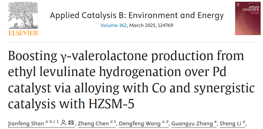 近日,永利官网化学化工与材料科学学院单建锋博士及其团队在生物质催化转化领域取得最新进展。相关研究成果发表在国际著名期刊《Applied Catalysis B: Environment and Energy》(中科院1区,TOP期刊,影响因子20.2)上,论文题目为Boosting γ-valerolactone production from ethyl levulinate hydrogenation over Pd catalyst via alloying with Co and synergistic catalysis with HZSM-5。