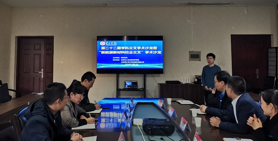 为深入贯彻落实习近平总书记关于发展新质生产力的一系列重要论述、重大部署,让科技创新为新质生产力发展注入强大动能,深化产教融合发展,创新校企合作模式,12月23日下午,由研究生处主办,化学化工与材料科学学院和山东精工电子科技股份有限公司联合承办的永利总站ylzz55第二十二期学科交叉学术沙龙暨“新能源新材料校企交叉”学术沙龙在市中校区综合楼1220会议室举行。山东精工电子科技股份有限公司常务副总裁王勇、研发一部经理张敬捧、研发主管杜显振、魏东和邵长旺,化学化工与材料科学学院院长刘春丽、锂电新能源材料团队教师代表等20余人参与了本次会议。