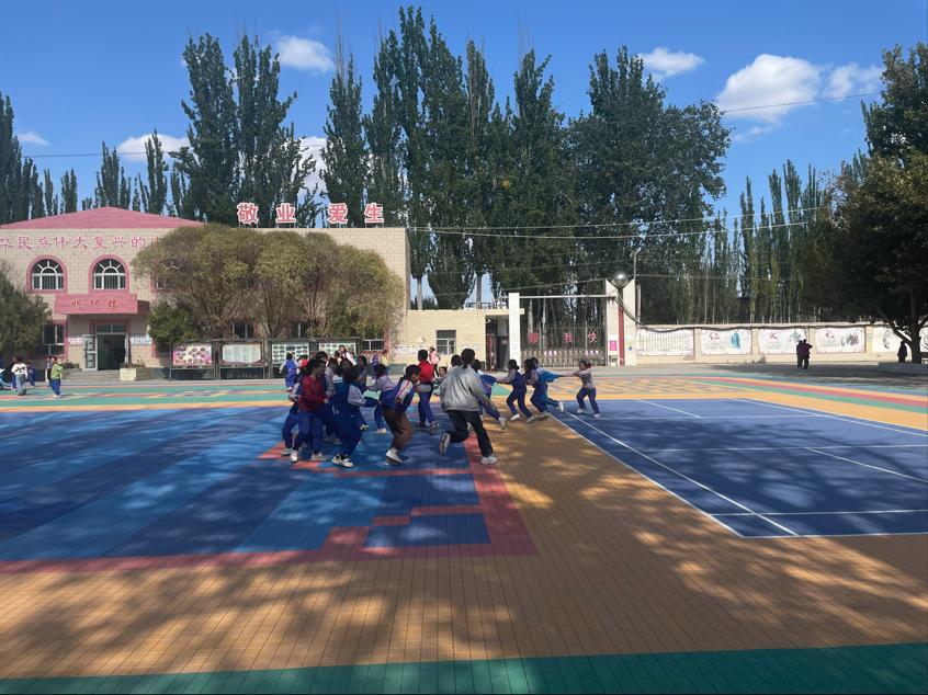 疏勒的中午很热,但小朋友的精力不减。课堂上,我跟小朋友们在操场玩丢手绢、玩老鹰捉小鸡,也会在操场上唱歌跳舞。这里的孩子们多才多艺,他们善于表现自己,不管是儿歌还是流行歌他们都熟练掌握。