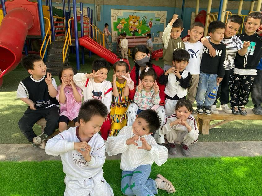 时光飞逝已经来到新疆一个多月了,回想过去在来之前内心的紧张不安早已统统消散,逐渐的适应了这里的生活。幼儿园上班的我在小朋友们的感染下每天也都变得活力满满,期待着每一天的到来!在这段日子里我努力把爱给了每一个孩子,一个微笑、一声鼓励、一次牵手、一次抚摸、在这样爱的关怀下,我与孩子们的距离越来越近,越来越亲,同时我也感受到了小朋友那份纯真的爱!