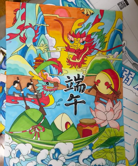 早上一到学校,我便给学生们布置了关于端午节的诗词创作和绘画任务,并告诉他们优秀作品会有奖品。教室里瞬间安静下来,孩子们纷纷拿起笔,认真构思创作。乃皮赛、热依麦和穆再排儿在画龙舟时,时不时抬起头,睁着亮晶晶的大眼睛询问我:“老师,龙舟的龙头涂金色好看,还是红色好看呀?”“老师,船身画成彩色的会不会更漂亮?”看着他们专注又可爱的模样,我内心满是欢喜,耐心地给出建议。每一次交流,都让我感觉和同学们的距离又拉近了一些,这种被信任、被需要的感觉,真的无比珍贵。想到一个月后就要离开这里,心中不由得泛起一丝伤感,但此刻,我更想珍惜和他们在一起的每分每秒。