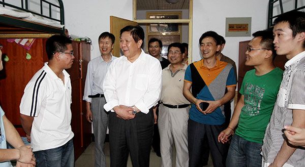 2013-06-28榴花似火,合欢飘香,又是一年毕业季。6月26日晚,校领导胡小林、曾宪明、高庆喜、李进京、颜世昌带领校办公室、宣传部、学生处、团委、教务处、后勤管理处、保卫处等部门负责人分三组深入宿舍,亲切慰问毕业生,为即...